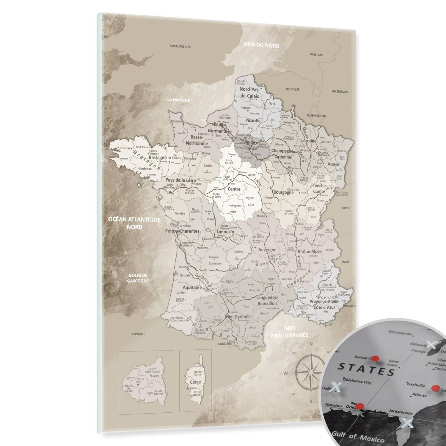 Magnetisches Glasbild - Frankreichkarte Beige